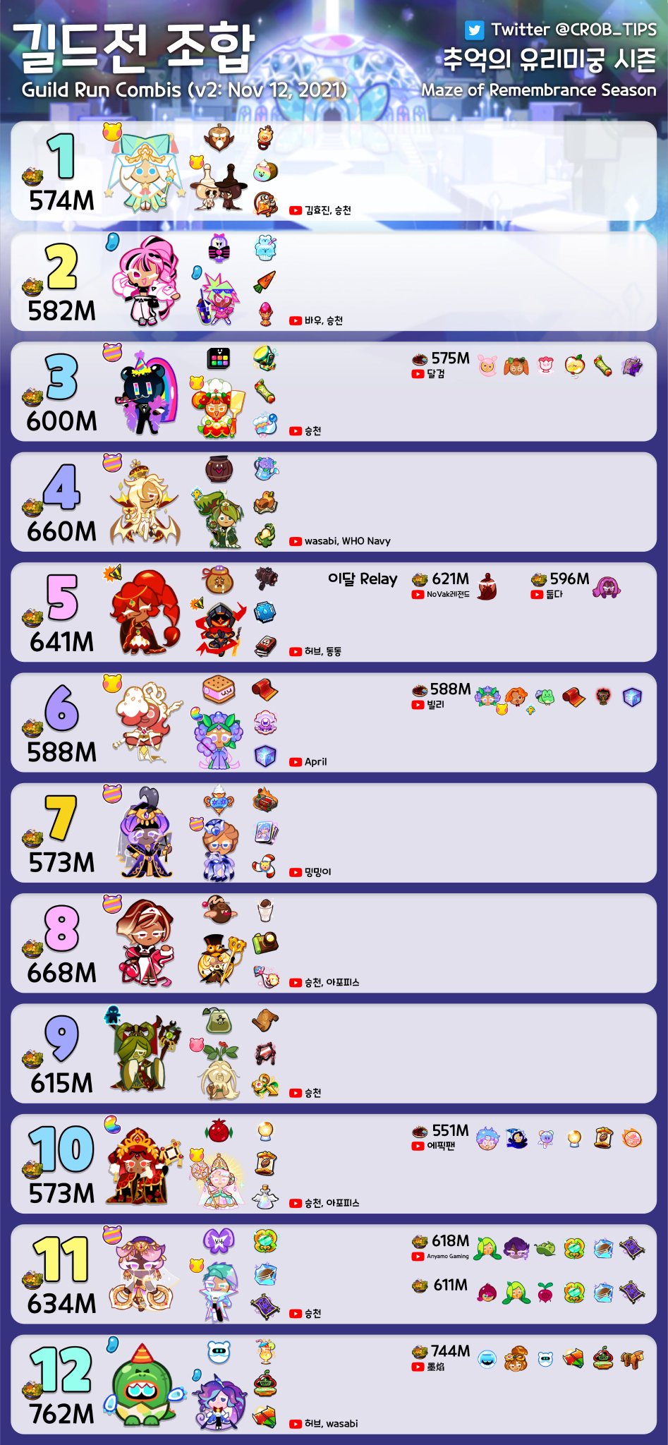 현재 진행중인 추억의 유리미궁 시즌에서 가장 최고 점수가 나오는 조합을